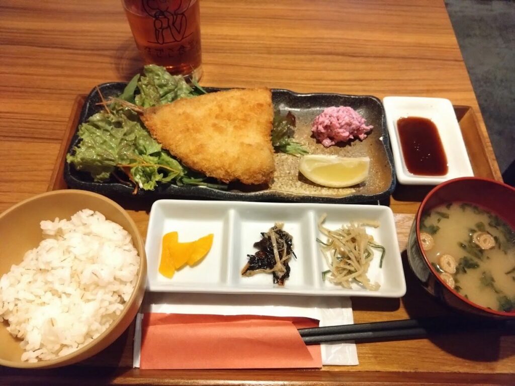 ↑よにのちゃんねる聖地巡り 「なぎさ食堂」さんでアジフライ定食