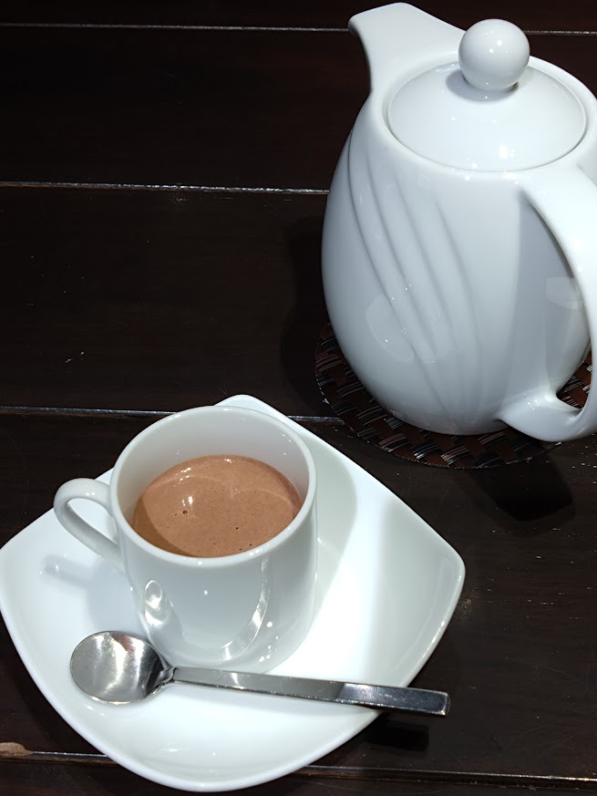 ショコラショーがポットで提供されます。銀座価格です。